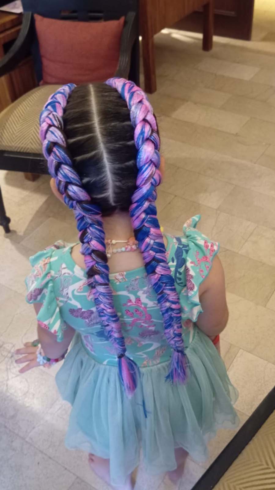 Add a fun splash of colour to your classic braids with our 2 Braids with Colour package! Perfect for kids, teens, or anyone wanting a playful, sporty style with a pop of vibrant coloured extensions woven into two neat braids. This quick yet stylish look is comfortable, easy to maintain, and ideal for your Bali adventures — from beach days to sunset selfies.
